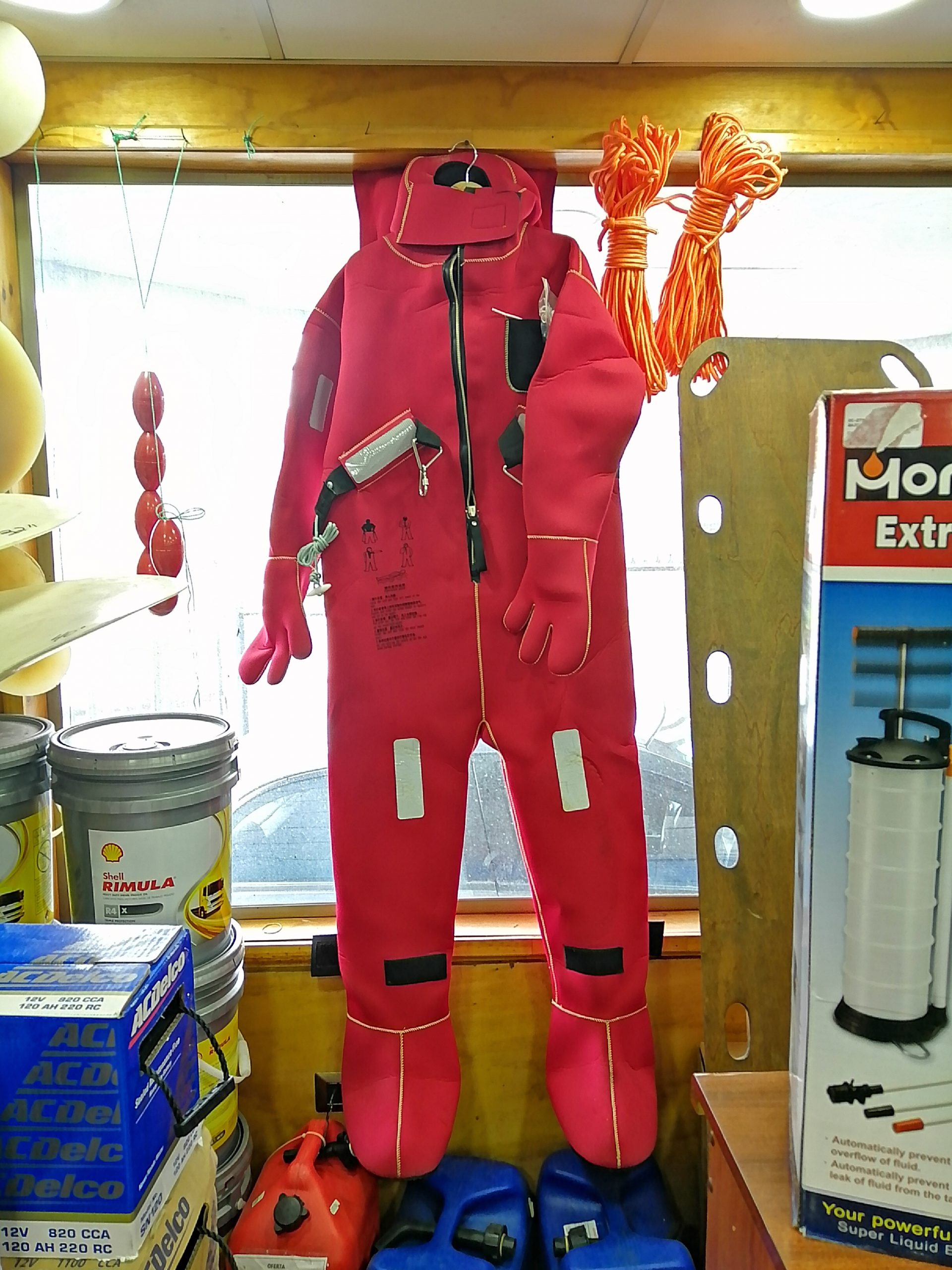 Traje seco especial que protegerá a una persona de hipotermia y mantendrá el calor corporal al estar inmerso en agua fría, tras el abandono de un buque. Está diseñado para ser utilizado sin chaleco salvavidas, debido a su flotabilidad.